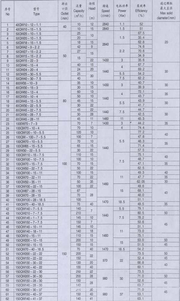 QW型系列混流式潛水泵系單級、單吸、軸向吸入、立式、機電一體、葉輪與電機軸直聯(lián),潛入泥漿、原油或清水等介質中工作,輸送介質的混合物比重為1:1-1:1.45。是油田石漬鉆井過程中抽送漿、清水或原油至循環(huán)泥漿池的配套設備。也是電廠礦山、煉油、造紙、印染、環(huán)保、市政工程、化工、漁塘鹽廠、釀造、大理石廠、建筑、煤礦等行業(yè)抽排泥漿和污水理想的泵型。同時,也可根據用戶的實際使用要求及介質情況,設計生產其它規(guī)格型號產品.